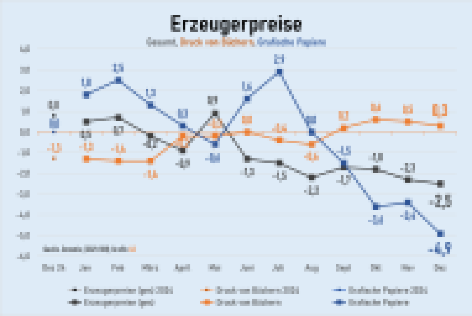 Die Preise für den Druck von Büchern und für Grafische Papiere haben sich im vergangenen Jahr nach Angaben des Statistischen Bundesamts (Destatis) leicht verbilligt. Vor allem die Kosten für zu bedruckendes Material rauschen aktuell in den Keller. …