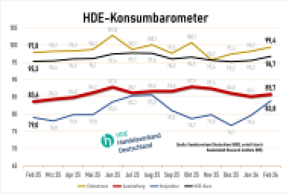 Nach den Werten des HDE-Konsumbarometers steigt das Einkaufsklima im Februar weiter an. Jetzt zieht auch die Anschaffungsneigung nach. Dafür steigen die Konjunkturerwartungen weiter kräftig. …