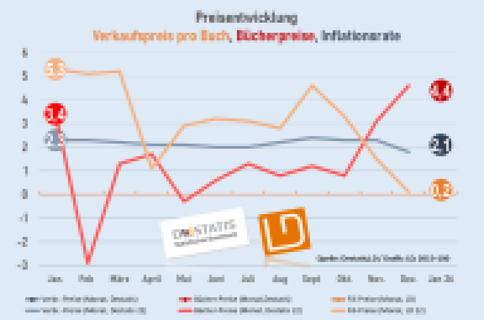 Das Statistische Bundesamt (Destatis) hält heute eine kleine Überraschung für die deutsche Buchbranche bereit. Nach LD-Auswertung der amtlichen Daten zur Entwicklung der Verbraucherpreise sind die Kosten für Bücher im Januar um 4,4 Prozent gestiegen. Das liegt deutlich über den Preisentwicklungen, die die Branche gemessen hat. …