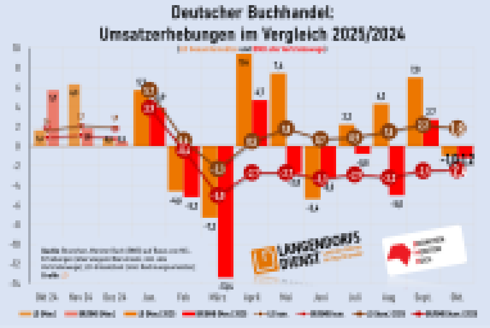 Im Oktober zementieren sich die Unterschiede der beiden deutschen Branchenerhebungen Branchen-Monitor Buch (BMB) und LD-Umsatztest weiter. Allerdings liegen beide bei der jeweiligen Ermittlung der Gesamtumsatzentwicklung im zehnten Monat auf fast gleicher Höhe. …