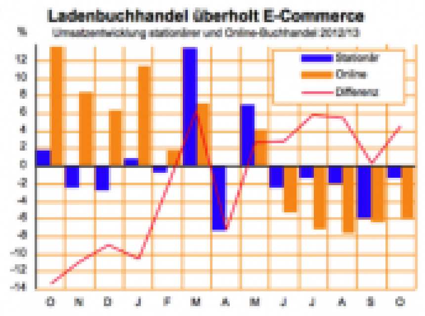 Wir hatten gestern über die detaillierten Zahlen der Einzelhandelsstatistik Oktober gesprochen, mit denen das Amt dem Einzelhandel mit Büchern ein kleines Minus bescheinigt (LD vom 19.12.2013). Wir wollen Ihnen auch nicht vorenthalten, was diese Quelle über die Umsatzentwicklung im Internet- und Versandhandel hergibt. …