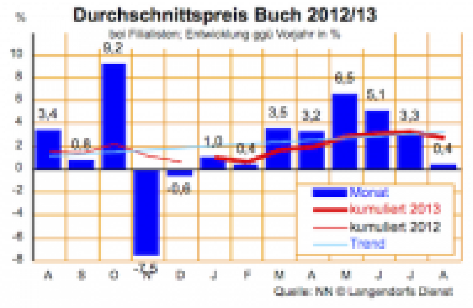 Der durchschnittlich für ein Buch an den Ladenkassen bezahlte Preis lag im August bei 7,85 Euro. Das wird uns aus Kreisen der Filialisten gemeldet. …