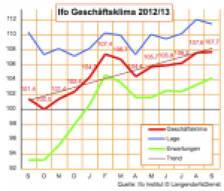 Zum fünften Mal in Folge ist der Ifo-Geschäftsklimaindex angestiegen, allerdings nur um den kleinsten denkbaren Schritt: von 107,6 Punkten im August verbesserte sich das meist beachtete Stimmungsbarometer der deutschen Wirtschaft auf 107,7 im September. …