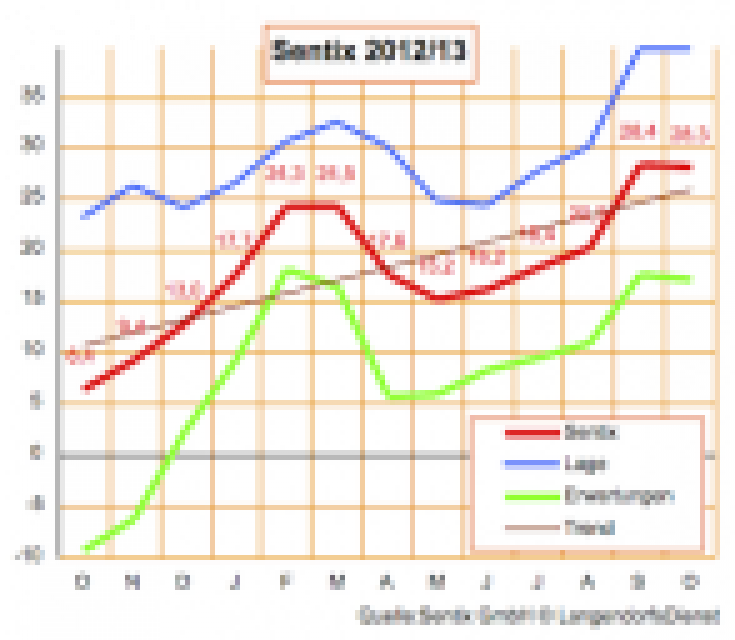 In Deutschland und erfreulicherweise auch in Euroland zeigt sich die Investorenstimmung ganz zuversichtlich. Das berichtet das Limburger Beratungsunternehmen Sentix, dessen Deutschland-Indikator zwar von 28,4 Punkten im September auf 28,3 im Oktober minimal zurückgeht, was aber nach dem starken Anstieg des Vormonats als Stabilisierung positiv zu interpretieren ist. …