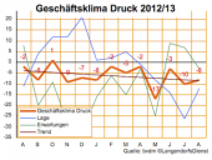 Das Geschäftsklima in der deutschen Druckindustrie hat sich nicht wirklich verbessert. Der Indikator des Branchenverbands bvdm ist im August zwar um zwei Punkte gestiegen, bewegt sich aber mit minus 8 weiter deutlich im negativen Bereich. …