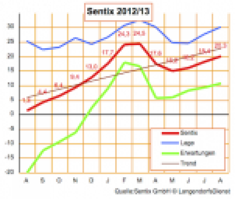 Ein überaus positives Stimmungsbild zur deutschen Konjunktur zeichnet die Umfrage des Limburger Beratungsunternehmens Sentix unter institutionellen und privaten Geldanlegern. Gestützt wird das positive deutsche Konjunkturbild dadurch, dass auch für Euroland jetzt die Erwartungen der Investoren wieder in den positiven Bereich zurückgekehrt sind. …