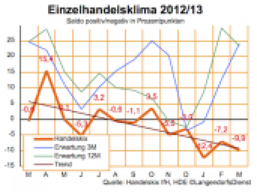 Die Einschätzung der aktuellen Geschäftslage ist im deutschen Einzelhandel weiter überwiegend schlecht. Das zeigt der Handelskix, der vom IfH für den HDE ermittelte Geschäftsklimaindex des Einzelhandels, auch im Monat April. Der Saldo aus den Urteilen "sehr positiv/eher positiv" und "eher negativ/sehr negativ" beträgt minus 12,5 Prozentpunkte, nach minus 9,9 im März. …