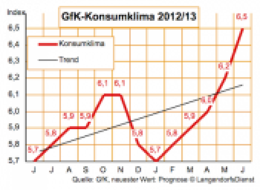 Angesichts anhaltender Euro-Unsicherheit und zurückhaltender werdender Konjunkturprognosen zeigt sich das GfK-Konsumklima wieder einmal erstaunlich stabil. Eine Beschäftigung auf hohem Niveau, gehaltvolle Tarifabschlüsse und sinkende Inflation stützen die Kaufkraft, außerdem ist die Sparneigung niedrig. …
