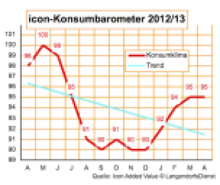 Unverändert bei 95 Punkten steht das Konsumbarometer des Icon-Instituts bei 95 Punkten. In dem bei 2000 deutschen Verbrauchern erhobenen Stimmungsbarometer überwiegt damit zwar weiterhin leicht der Pessimismus, die Gemütslage zeigt sich aber im Verlauf ganz stabil. …