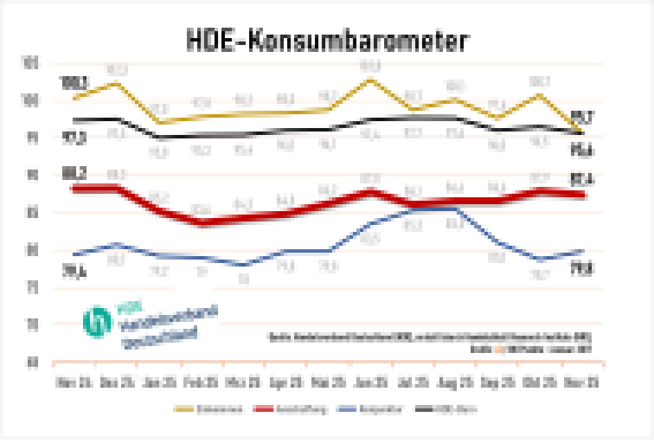 Das HDE-Konsumbarometer setzt seine Zick-Zack-Linie fort. Im November geht es wieder ein paar Punkte nach unten, das sollte aber nicht die Laune zum Wochenanfang verderben. …