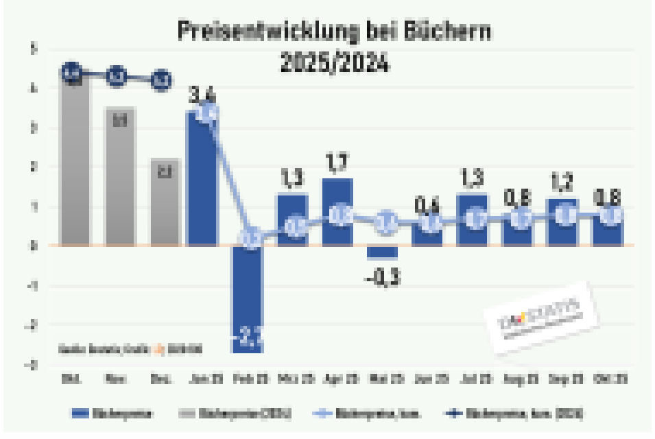 Die Preise von Büchern entkoppeln sich nach Angaben des Statistischen Bundesamts (Destatis) auch im Oktober weiter von der Inflationsrate. Ihr Anstieg zementiert sich auf der Höhe von plus 0,8 Prozent. …