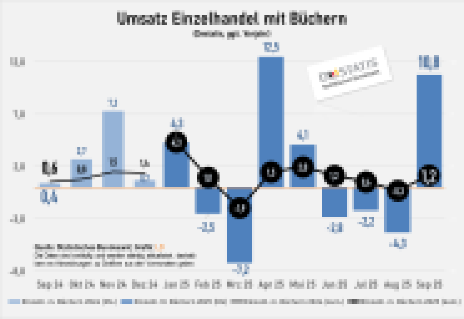 Nach Angaben des Statistischen Bundesamts (Destatis) hat der deutsche Buchhandel im September ein zweistelliges Umsatzplus im Vergleich zum Vorjahresmonat erzielt. Das ist aus mehreren Gründen überraschend. …